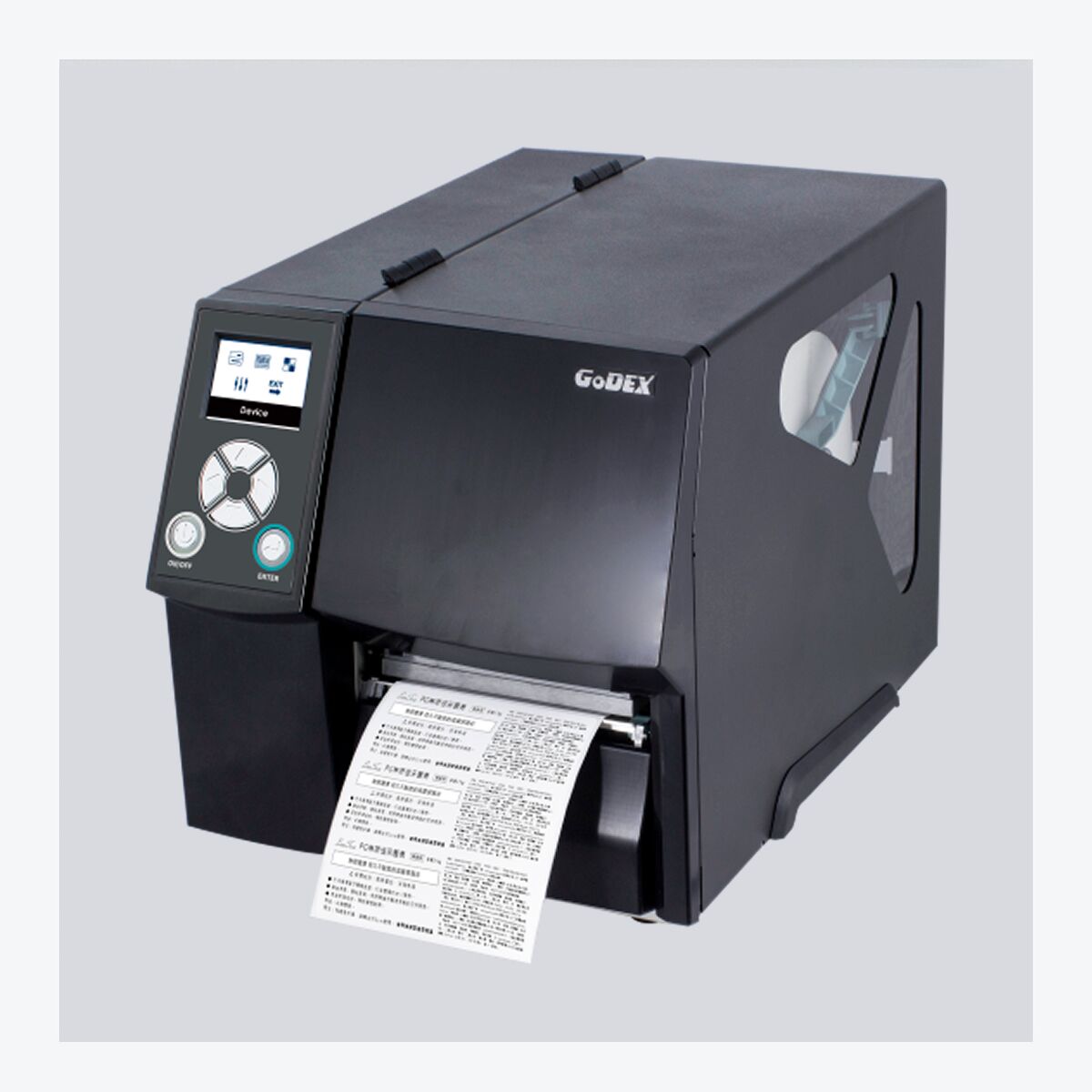 GoDEX ZX420i+ Light Compact Industrial Label Printer is a compact industrial thermal transfer and direct thermal label printer for medium-duty use. It offers 203 or 300 dpi resolution, up to 6 ips print speed, a colour LCD panel, multiple connectivity options, and support for large label and ribbon capacities.