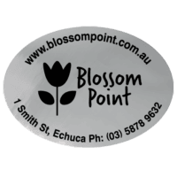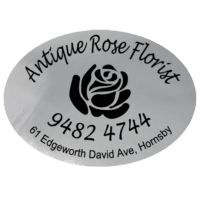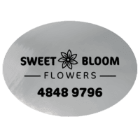 Gold & Silver Oval Custom Florist Labels combine a metallic-style finish with crisp custom printing for professional, high-end branding. The gold and silver tones catch the light subtly, enhancing your branding without overpowering your arrangements.
