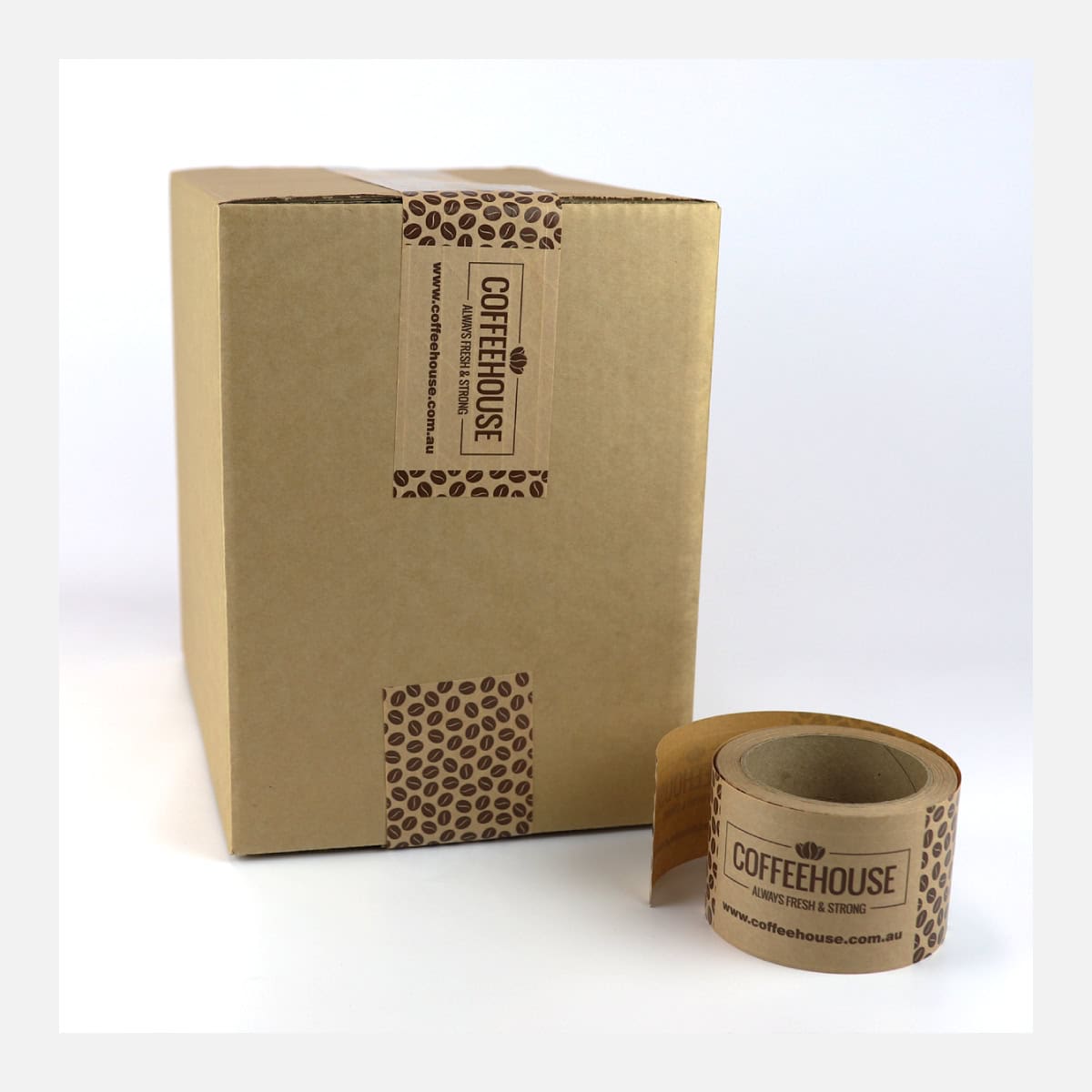 Add a sustainable and professional touch to your parcels with our Custom Packaging Tape, printed in full colour (optional white) on strong Kraft reinforced paper stock. This Printed Custom Tape is water-activated for secure adhesion to most cartons and packaging materials. Apply water using a sponge or manual desktop applicator, through to automatic electronic applicators for larger users.