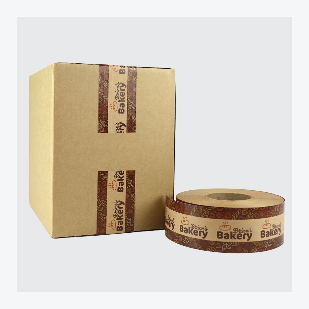 Kraft Packaging Tape is custom water-activated reinforced kraft paper tape printed in full colour (optional white) for secure, eco-friendly carton sealing. Choose 70mm rolls in 25m, 50m, or 100m lengths, select a 100/250/500mm print repeat, and upload artwork or request design help.
