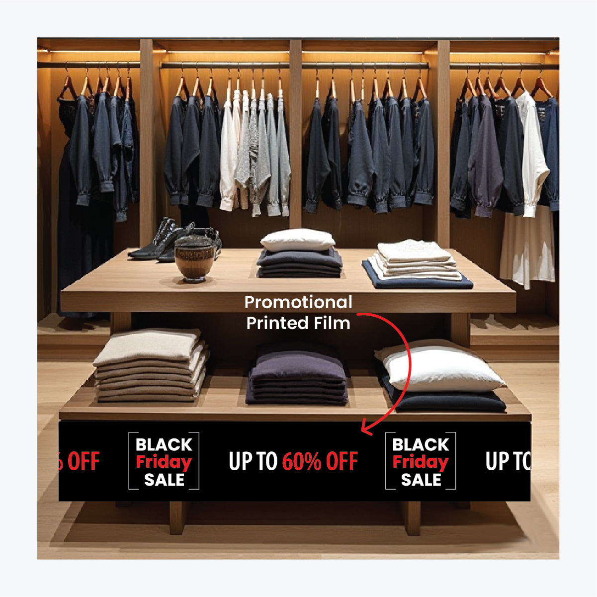 Add colour, movement, and branding to your store or event with our custom promotional printed film. Perfect for retail displays, product launches, in-store promotions, or outdoor events, our film is an easy and affordable way to grab attention and enhance your brand visibility.