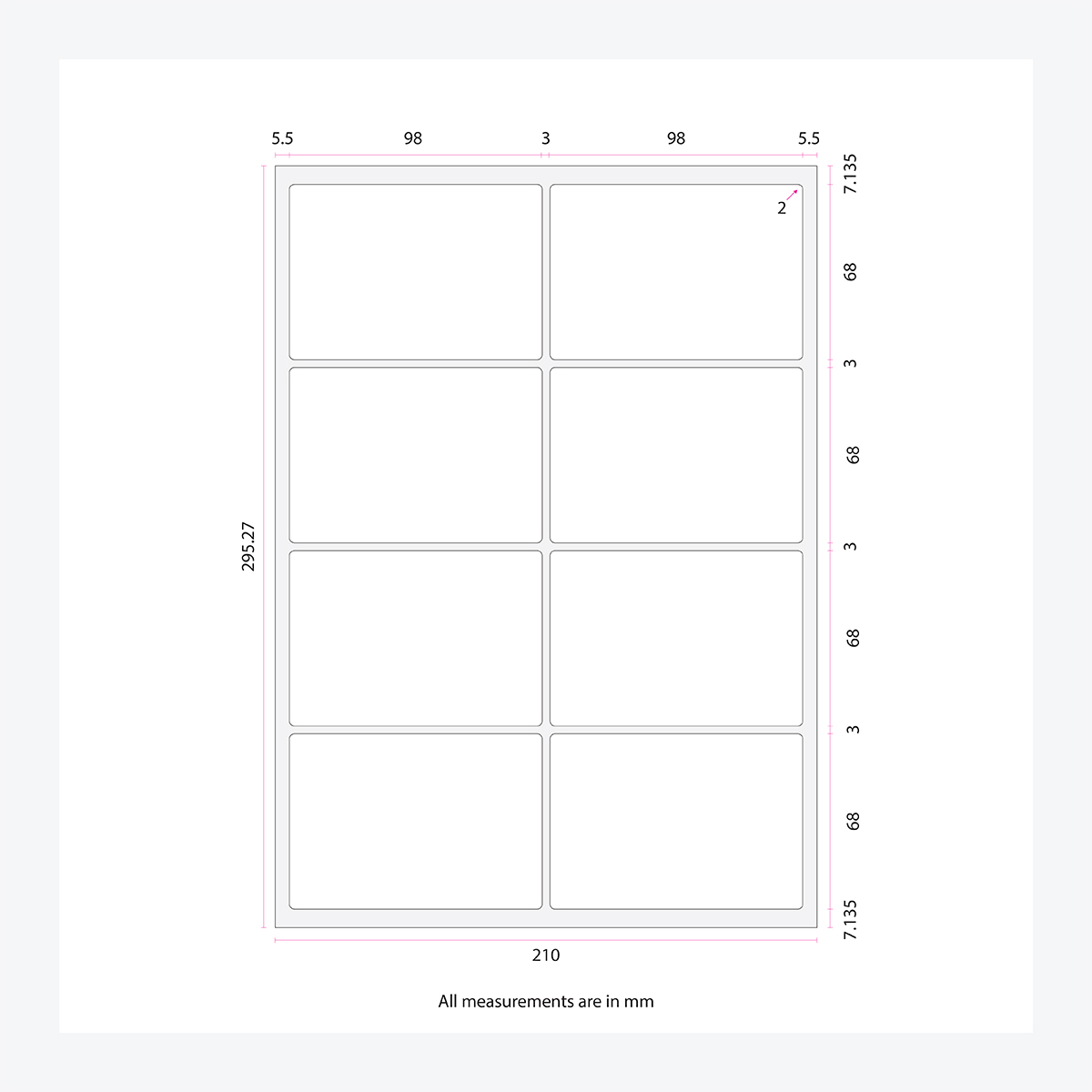 | Presentation | 8 labels per sheet/100 sheets per pack |