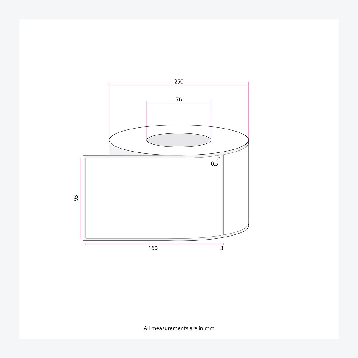 White Synthetic Self-Adhesive Labels 95x160mm are synthetic thermal transfer label rolls for printing long-lasting information such as pricing, barcodes, and plant or product descriptions. They use a permanent aggressive adhesive for waterproof indoor/outdoor use, are supplied one per view on rolls, and let you choose quantity and print options.